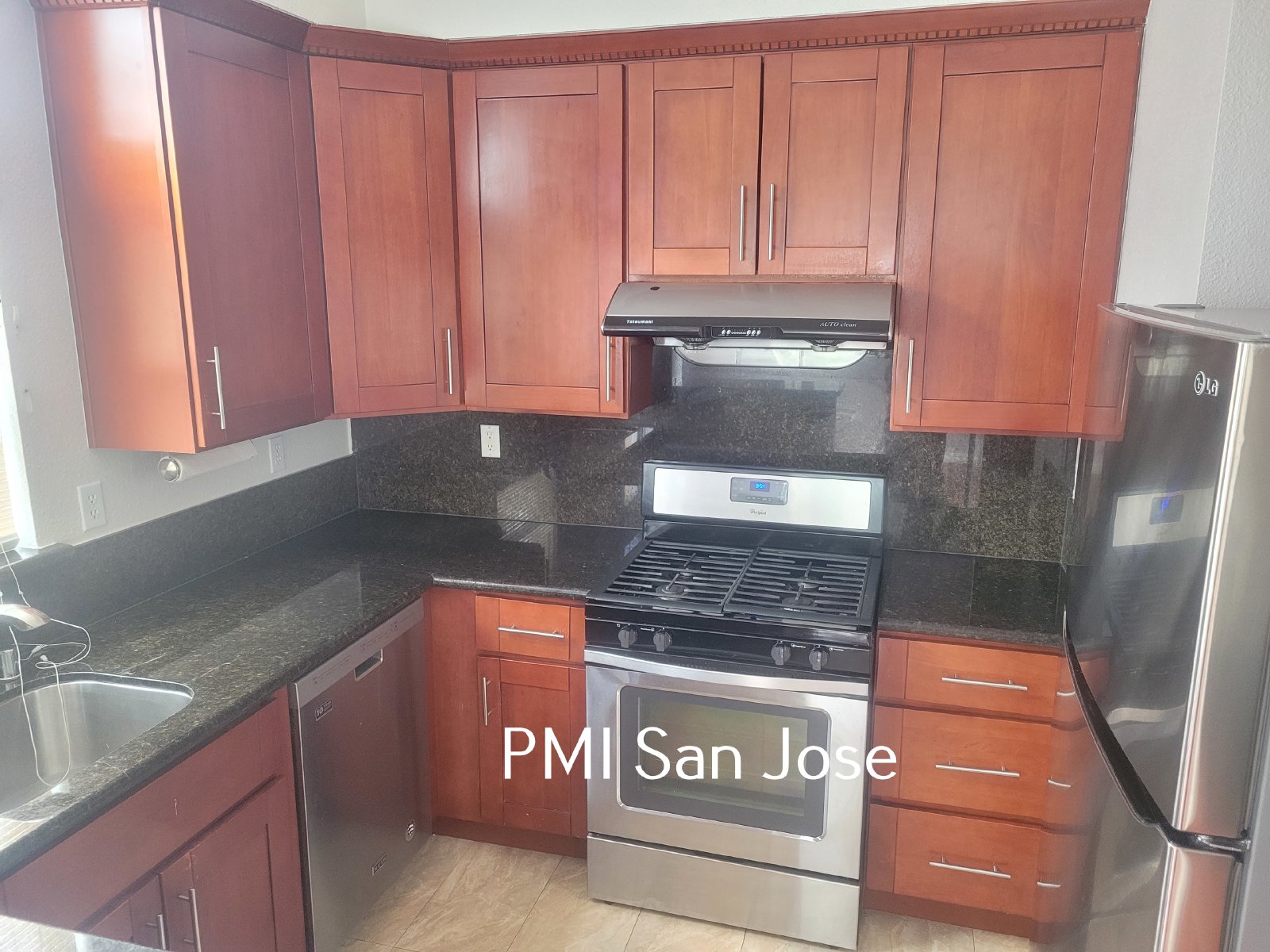 It features a gated community, newer model, vaulted ceilings, hardwood floors throughout, gas stove, dishwasher, refrigerator, washer, dryer, granite counters, gas fireplace, central heating and air. 2 car garage, community pool, guest parking, close to good schools, shopping, Bart, freeways 680/880, central park.